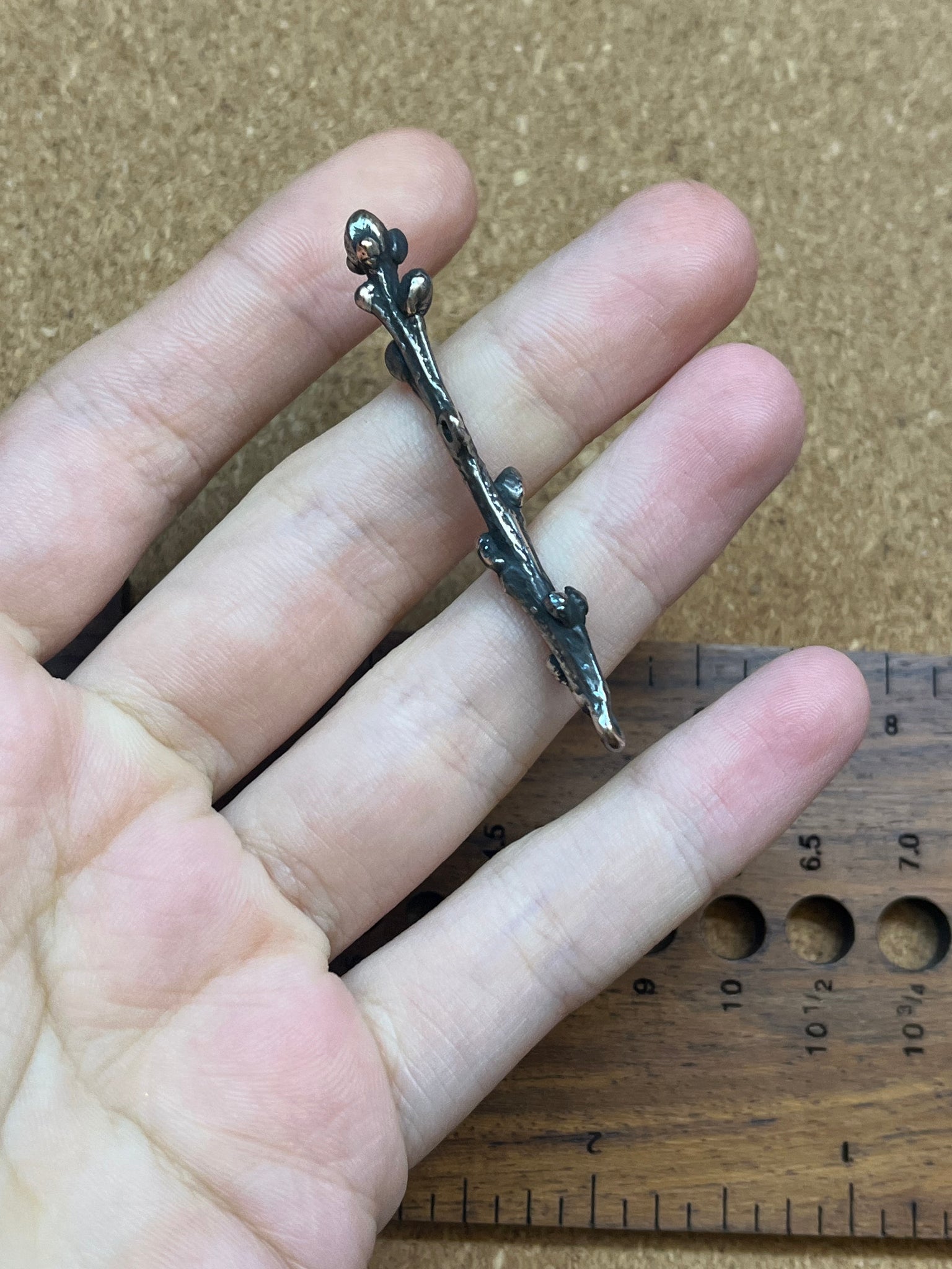 Handcarved by Cynthia Thornton and cast in SHIBUICHI (alloy of copper and silver)